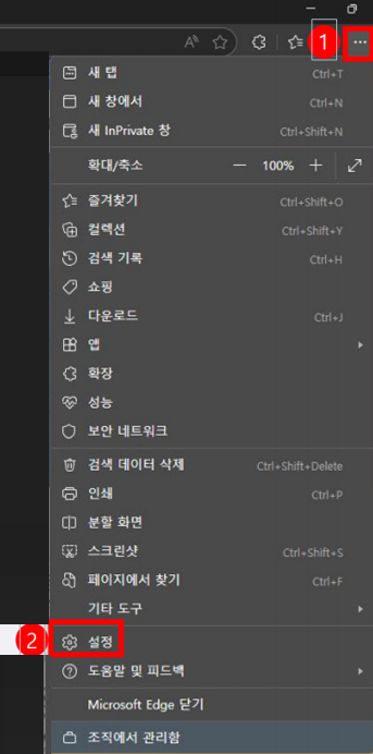 1. 팝업 차단을 해제하기 위해 브라우저 우측 상단에 […] 을 클릭합니다.